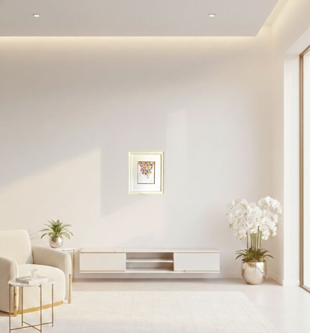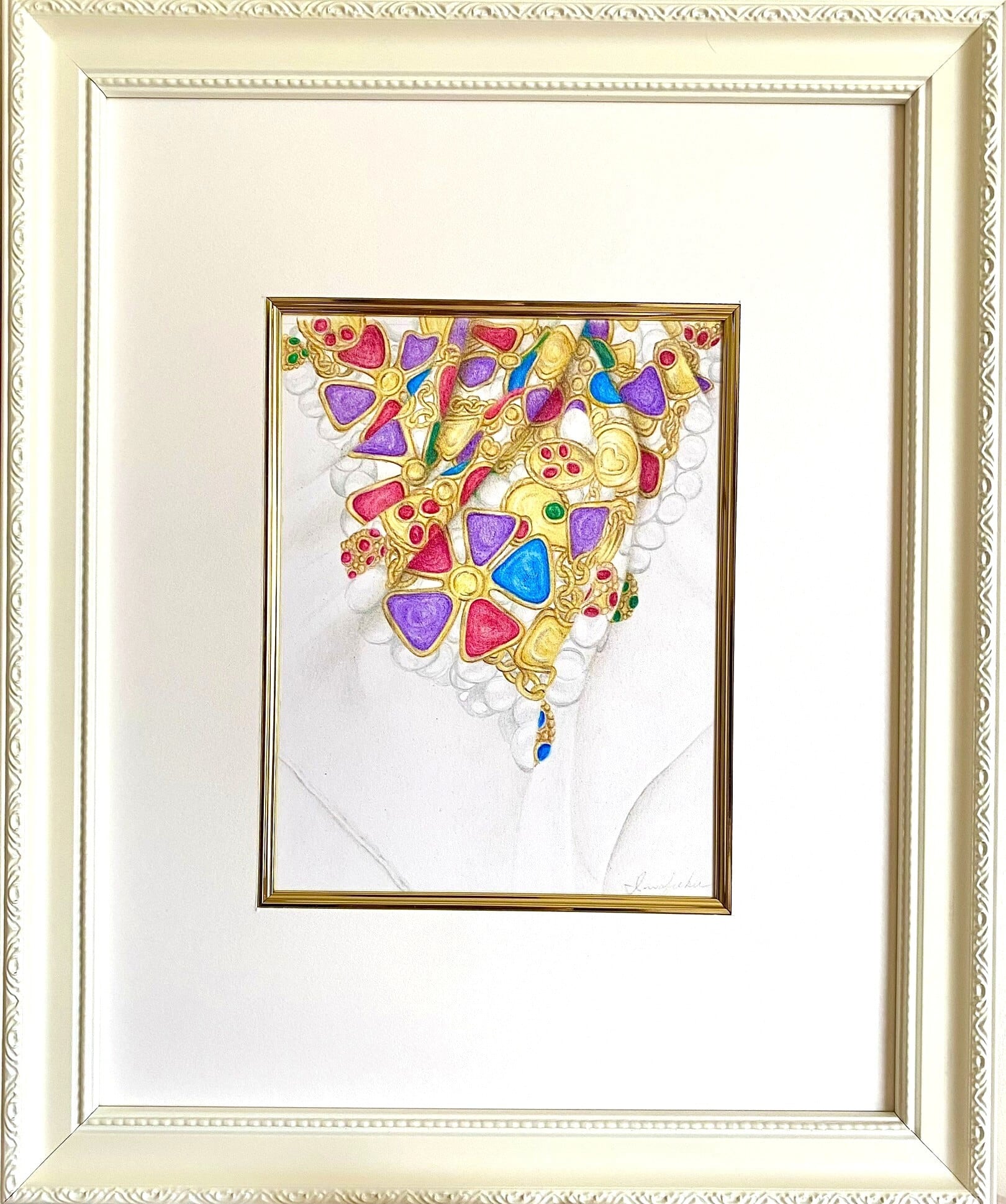 白×ゴールドのスタイリッシュな額装です。